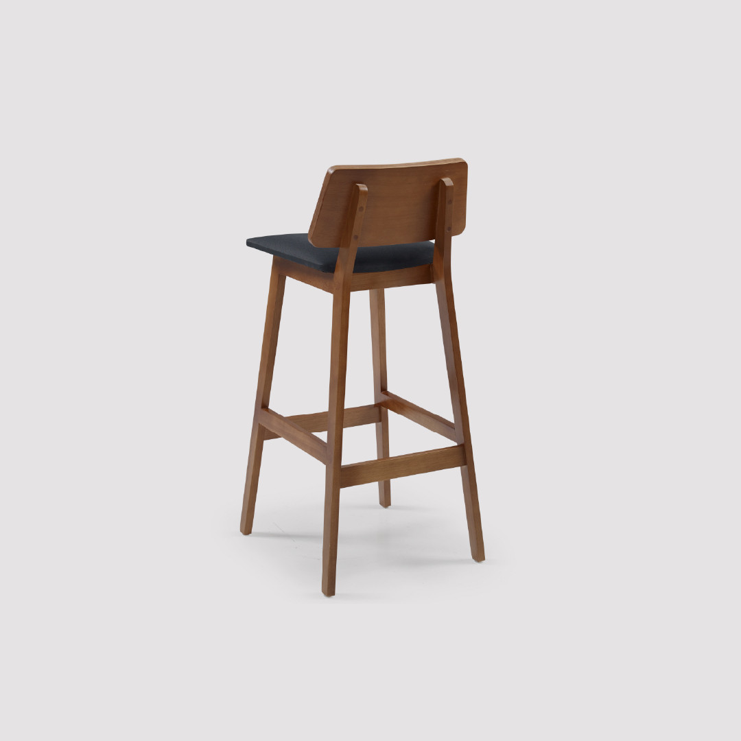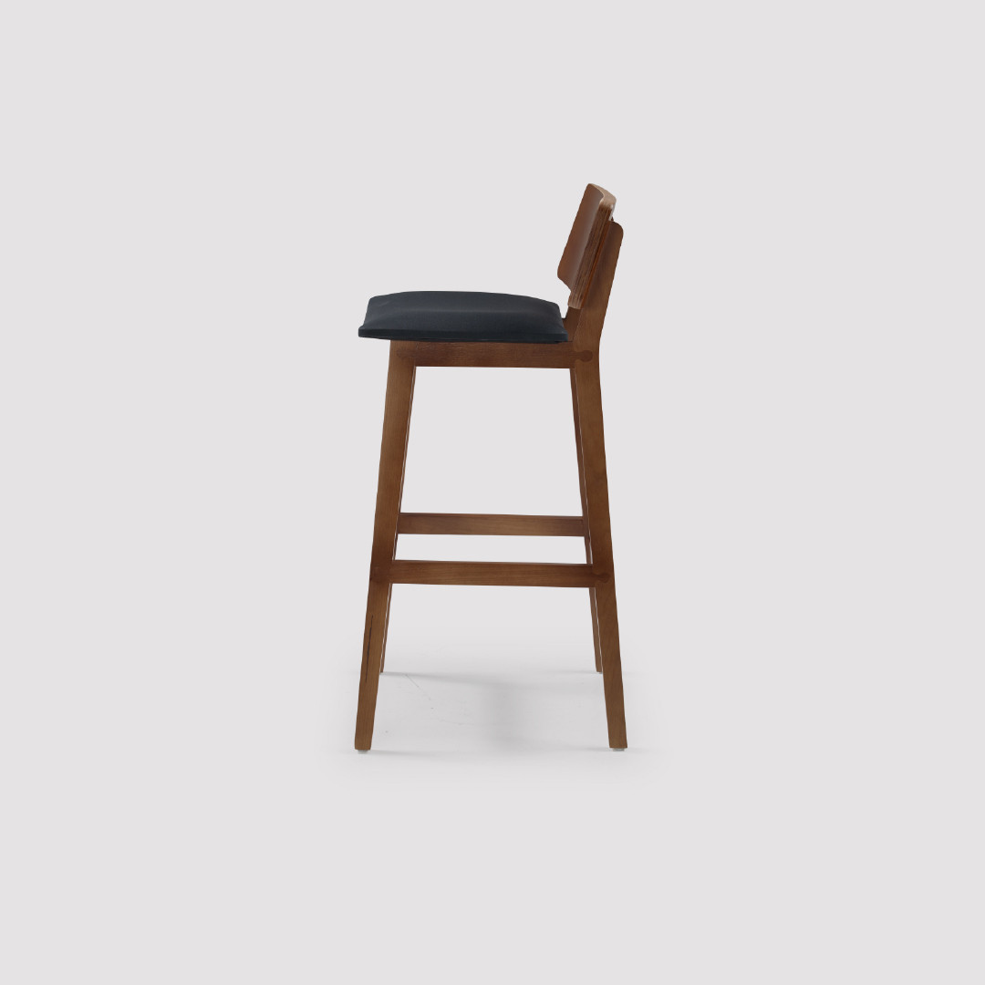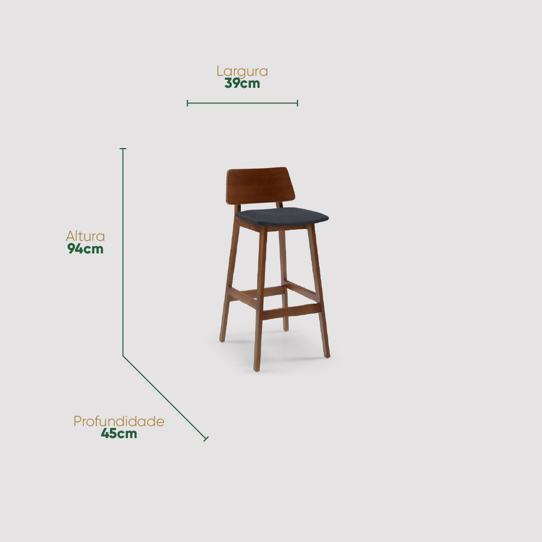 O encosto baixo com leve curvatura proporciona apoio natural para as costas, tornando a experiência mais confortável em comparação a banquetas tradicionais sem suporte.